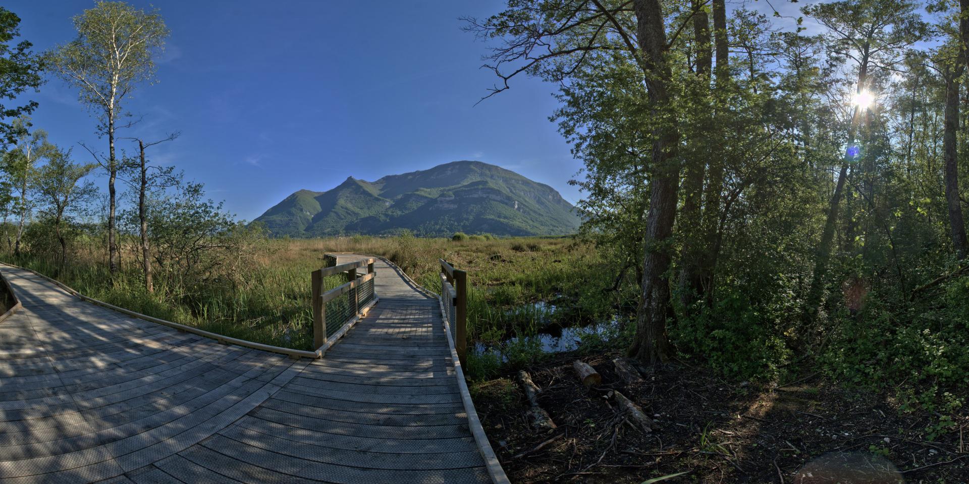 The Lavours marsh is one of the last large continental marshes in Western Europe. It consists of a nature reserve of 500 ha of wet meadow traversed by a wooden path on stilts of 1.5 km and located at the foot of the Grand Colombier.