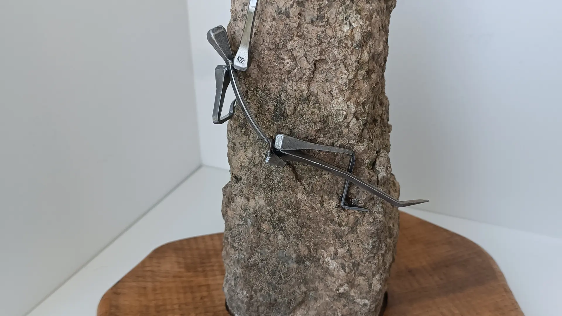 Nails that I shape by hand, using pliers...then that I weld together with a TIG machine before brushing and varnishing them.