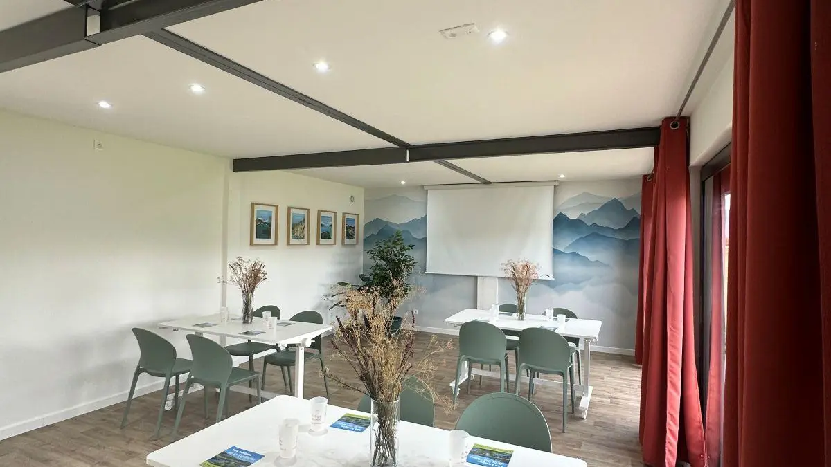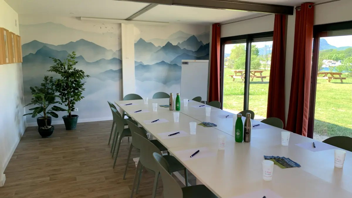 Discover the seminar room at Les Lodges de la ViaRhôna! An ‘event container’, a modular reception room for your events, in the heart of an exceptional natural setting near the ViaRhôna.