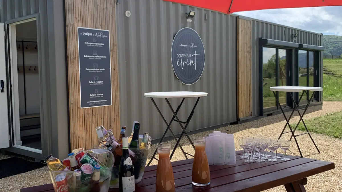 >Partial or total privatisation / by the day or for several days of our EVENT container, a 60m² modular room. Unusual accommodation with Nordic baths available on site.