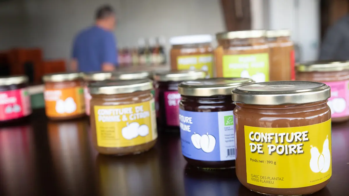 GAEC Guilland des Plantaz offers a wide range of organic apples and pears as well as related products: juices, nectars, compotes, purées, jams, sorbets and ice cream logs, as well as Bugey wines and farmhouse cider.
