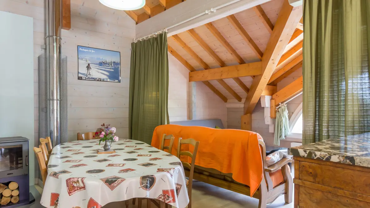 On the first floor of a magnificent building made of solid spruce, an 80m² ecogite, entirely self-sufficient in energy, welcomes you for a gentle stay. Above a confectionery, between the Alps and the Jura, come and enjoy the quiet life of the Valromey.