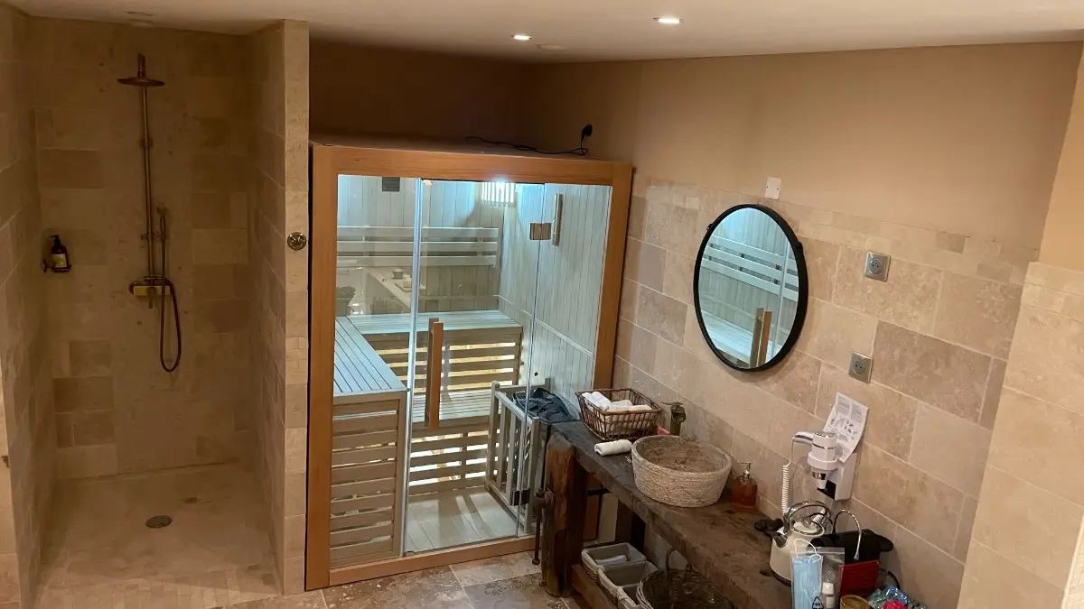 Combine the benefits of color with chromotherapy to create pleasant lighting effects. A sauna session is a moment of relaxation for body and mind. The benefits lie in the extreme temperature to which the body is subjected, and the alternating hot and cold. Bathrobes and slippers are provided free of charge, as is a tea and coffee bar. Breakfast is included.