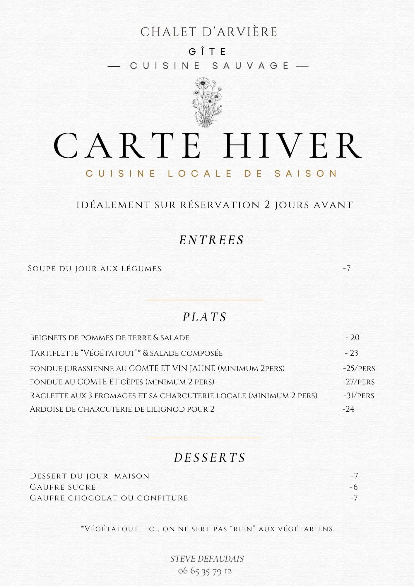 In the Grand Colombier massif, in the Chalet d'Arvières at 1200 metres, local cuisine with aromatic plants from the botanical garden and wild plants. Peaceful setting with views over the Valromey.