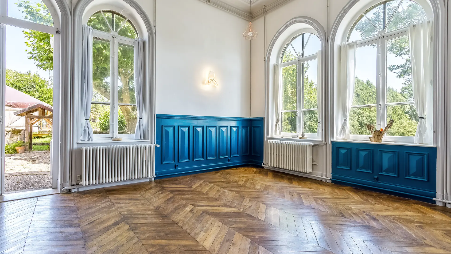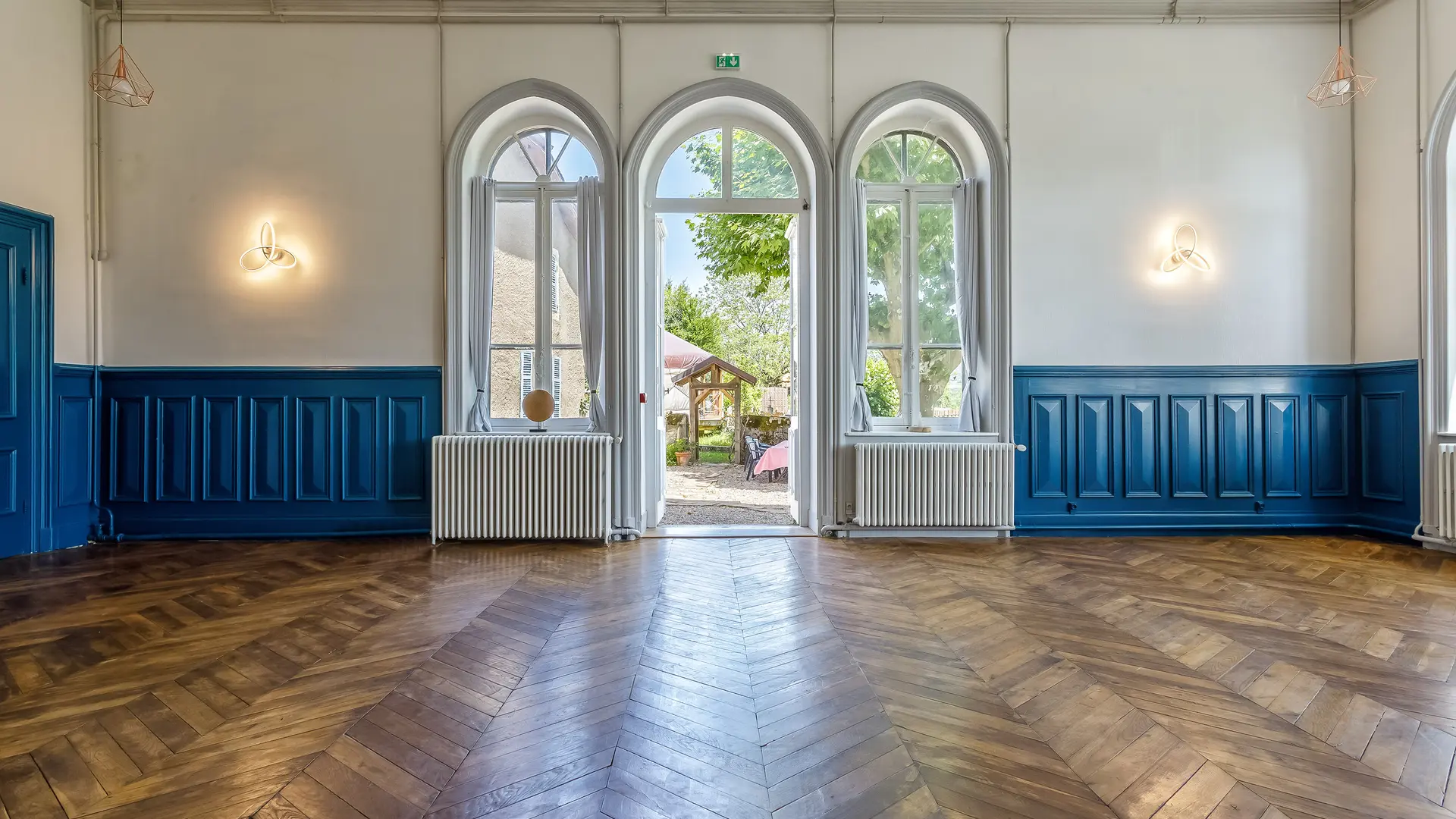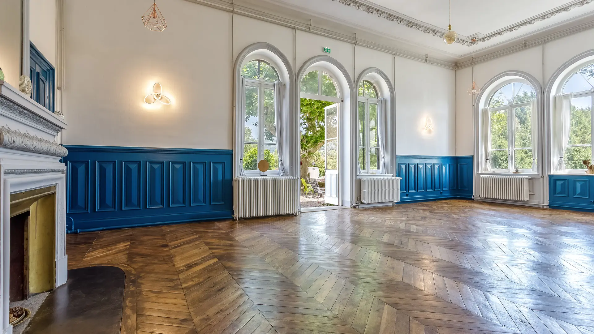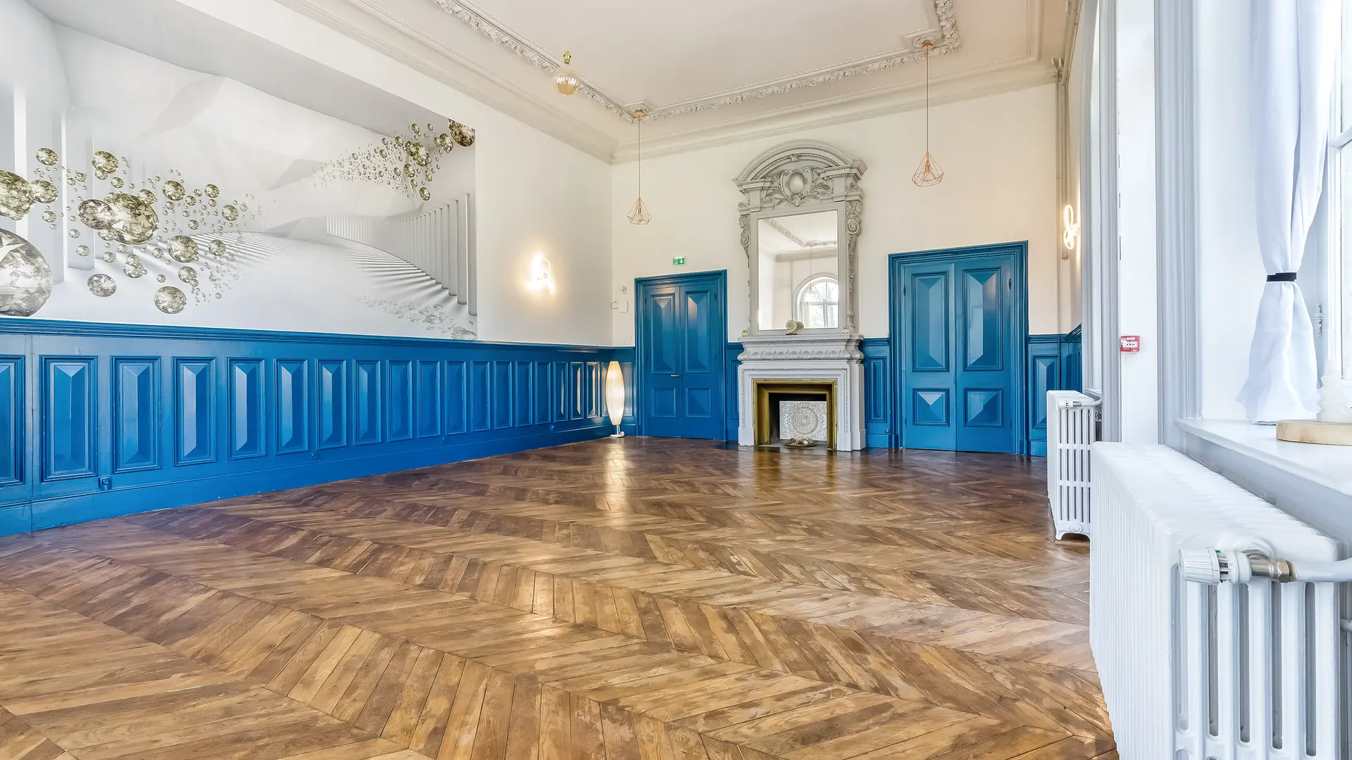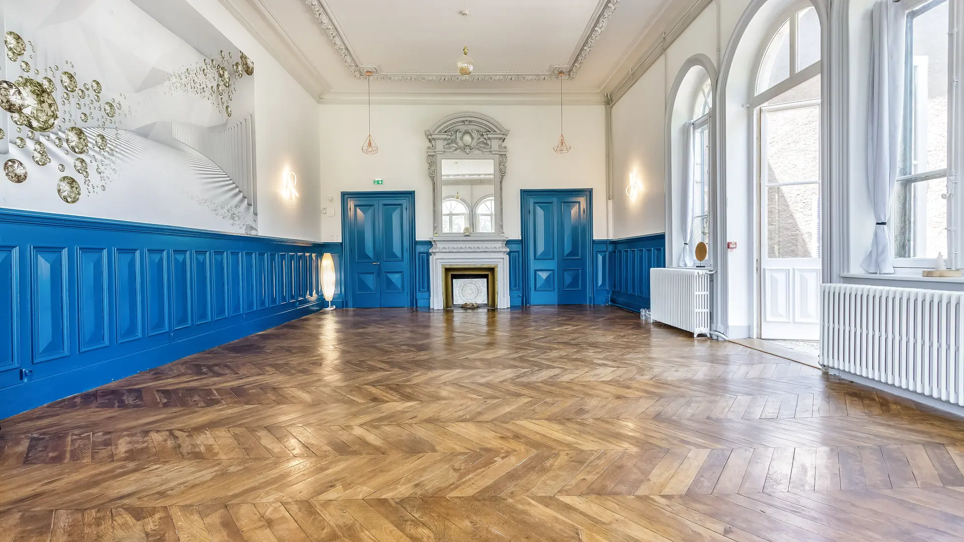 80m² room with 6m high ceilings and natural lighting thanks to 5 bay windows overlooking the terrace. The room is equipped with Wi-Fi, tables, chairs, a flipchart, a screen and an overhead projector.