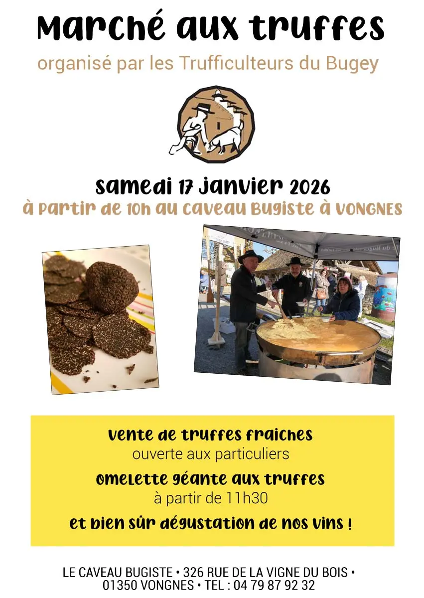 Organised by the Trufficulteurs du Bugey, visit the truffle market at the Caveau Bugiste.