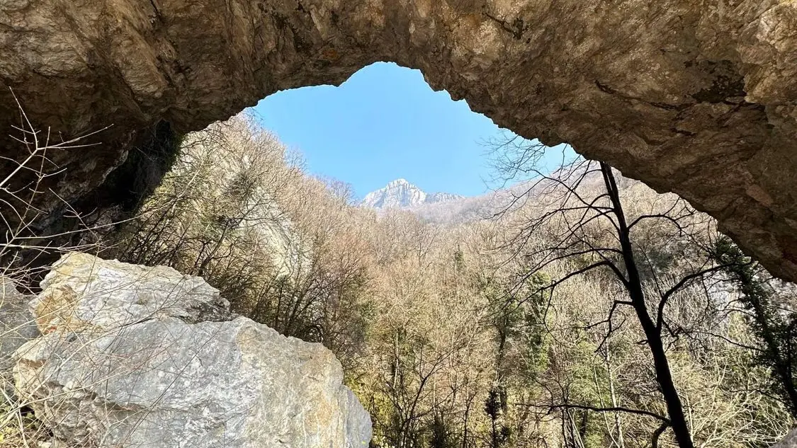 This climb has a little more than 1000 m of elevation gain in less than 4 km from Béon to the heights. You will follow a dry stream up the hill to pass through the incredible pierced rock, an imposing rocky bar with an arch. Then arrive at the picturesque granges of Izena, before moving back and forth on the rock of Chanduraz to enjoy a breathtaking view of the Alps, the Rhône river winding in the south of Bugey. (The end of the cliff is inaccessible)