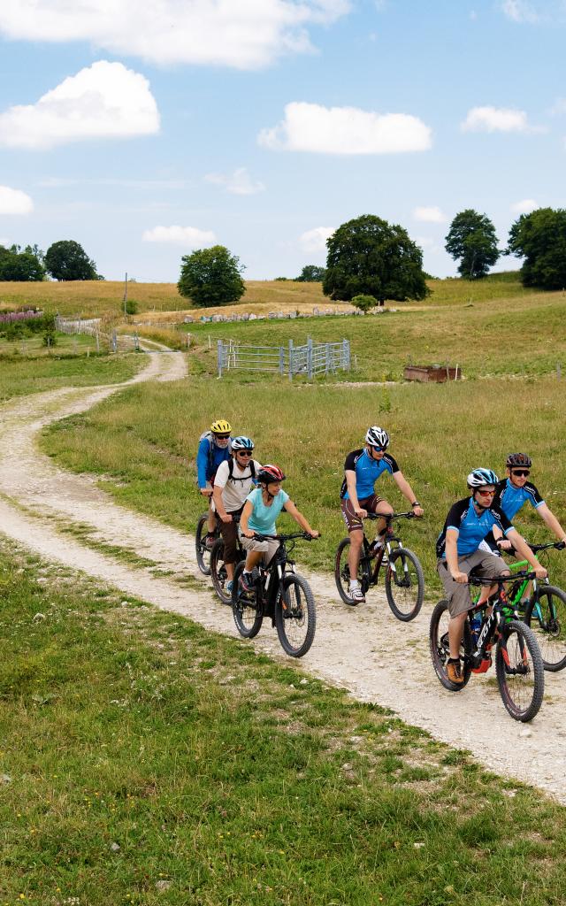 Cyclistes dans les pentes du Grand Colombier côté Valromey