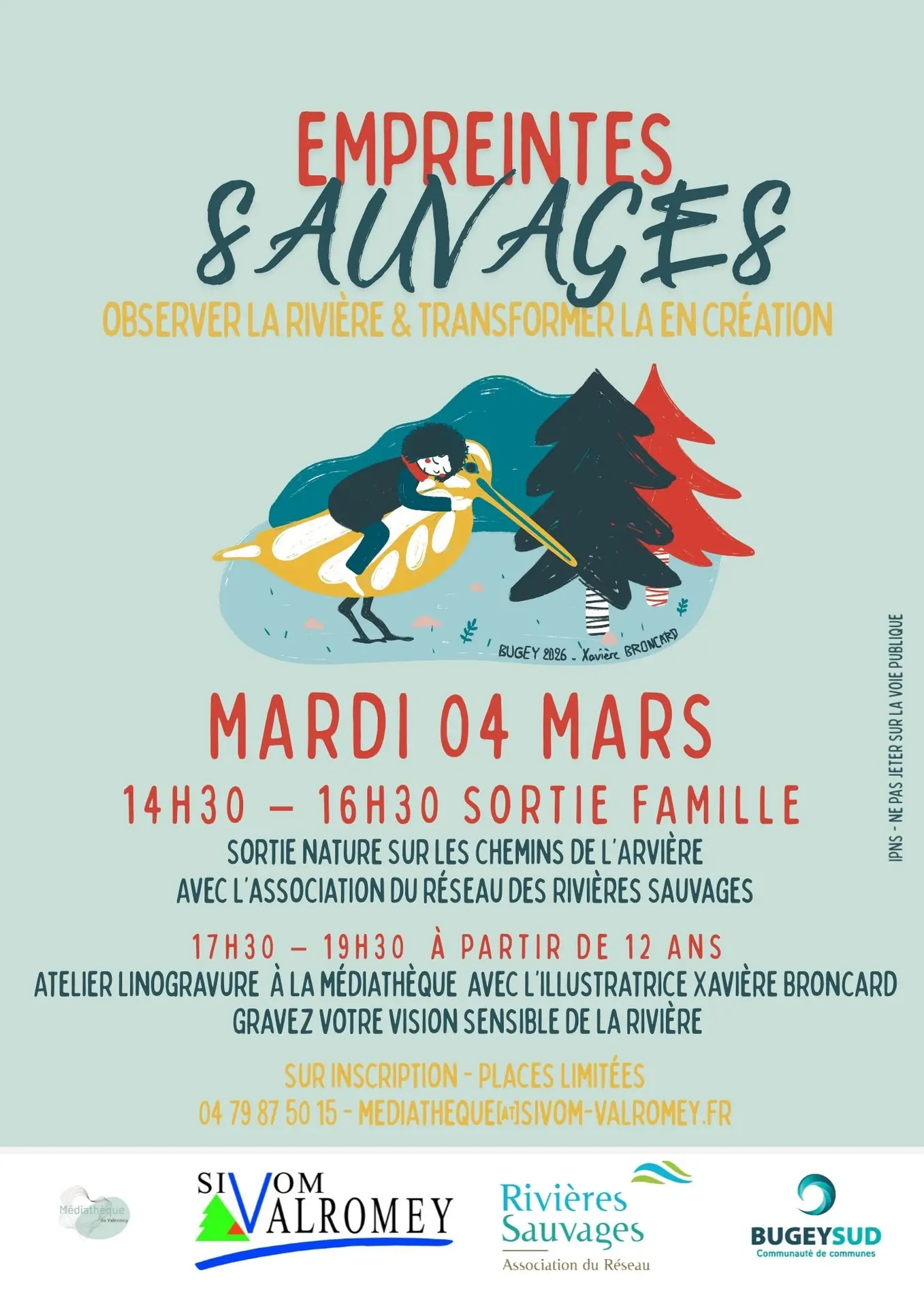 Sortie nature le long de l’Arvière et atelier linogravure pour découvrir et créer autour d’une rivière sauvage.