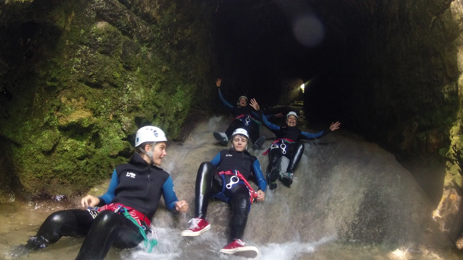 Au programme : des toboggans naturels, des sauts petits ou grands (qui ne sont pas obligatoires), des passages souterrains, du rappel plus ou moins grand.
