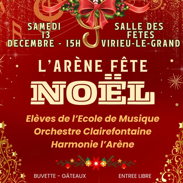 Concert de Noël de l’Arène ! Concert avec les élèves de l’école de musique, l’orchestre junior et l’harmonie l’Arène !