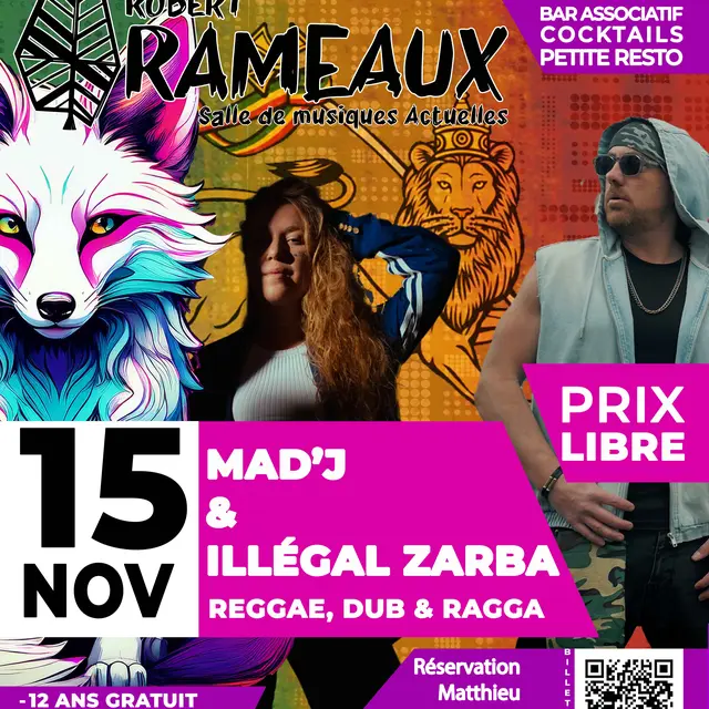 Entre la chaleur du Dub de MAD’J & Rajah T et la tornade Ragga Hip-Hop d’Illegal Zarba, l’Espace Rameaux s’annonce comme le théâtre d’une soirée d’exception — une célébration vivante des musiques libres et insoumises, vibrantes d’humanité et d’énergie.