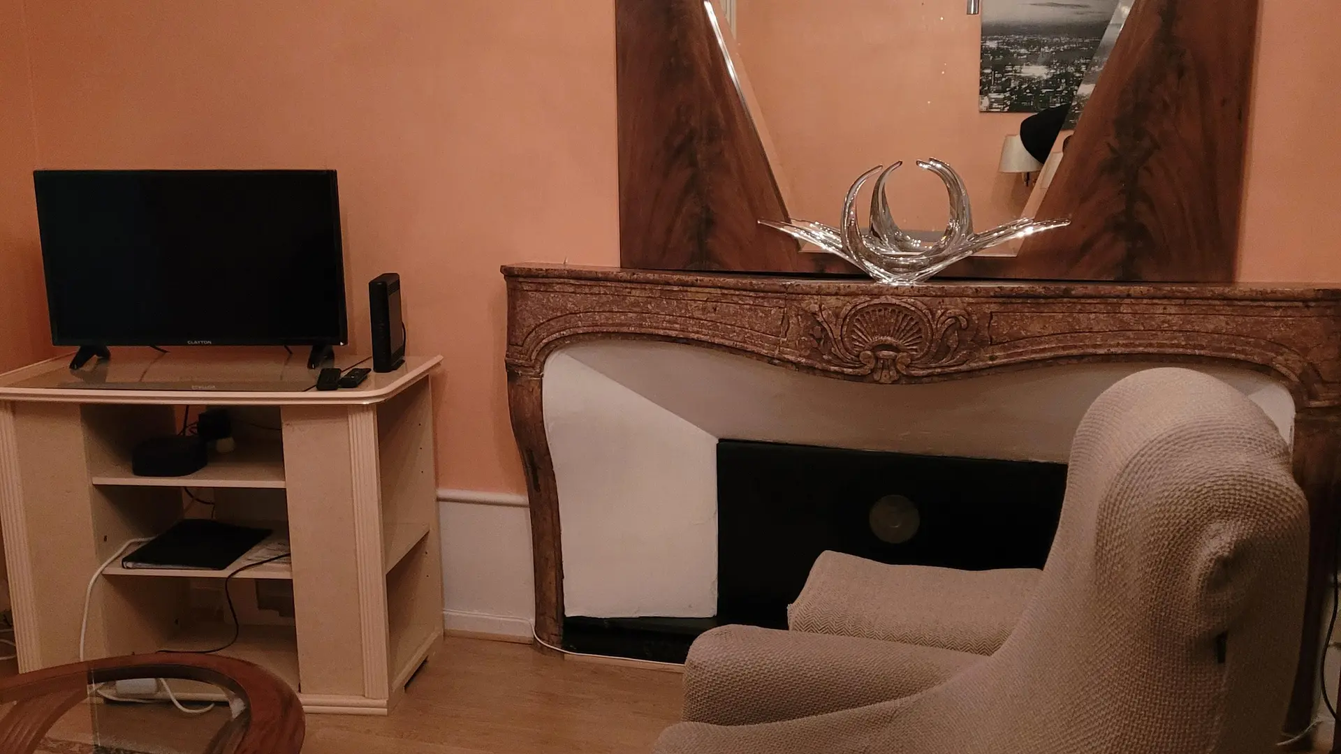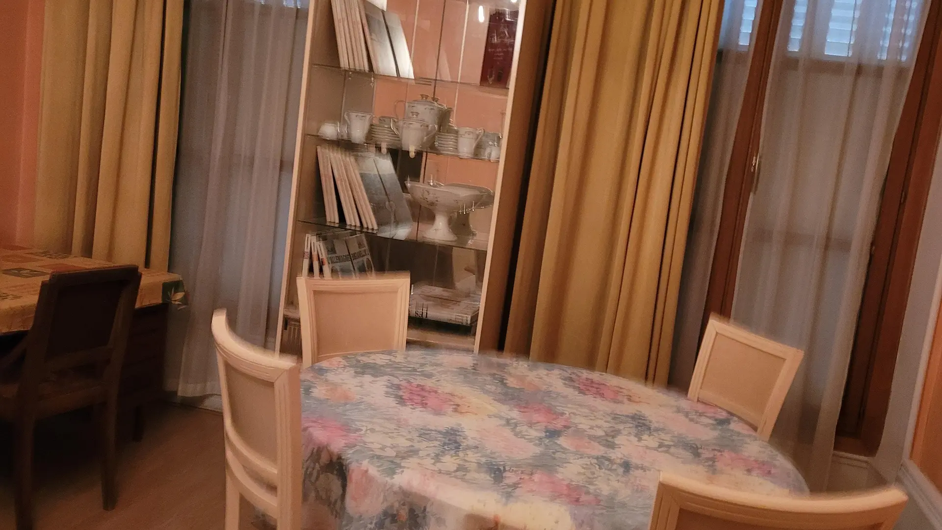 Situé au premier étage d'un immeuble de deux étages et sécurisé par un digicode, l'appartement est composé de deux chambres (une chambre avec un lit double et une chambre avec deux lits simples), d'une cuisine équipée, d'un grand salon et d'une salle à manger.