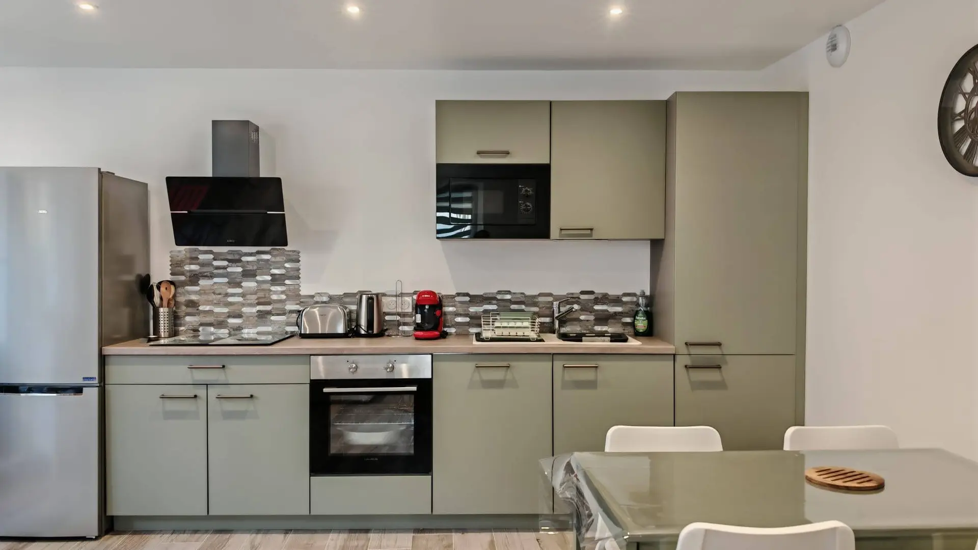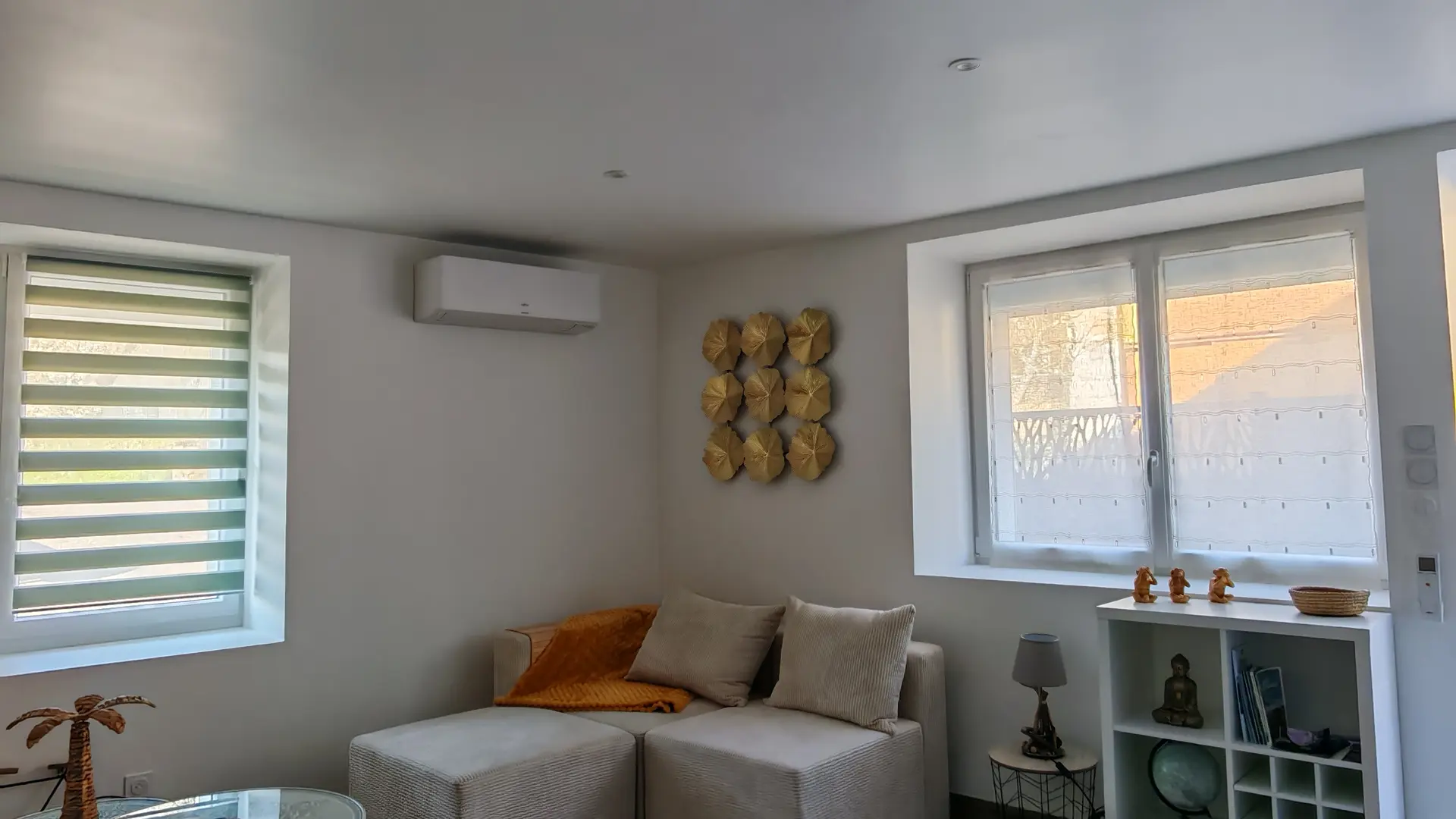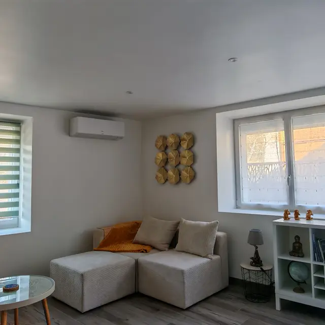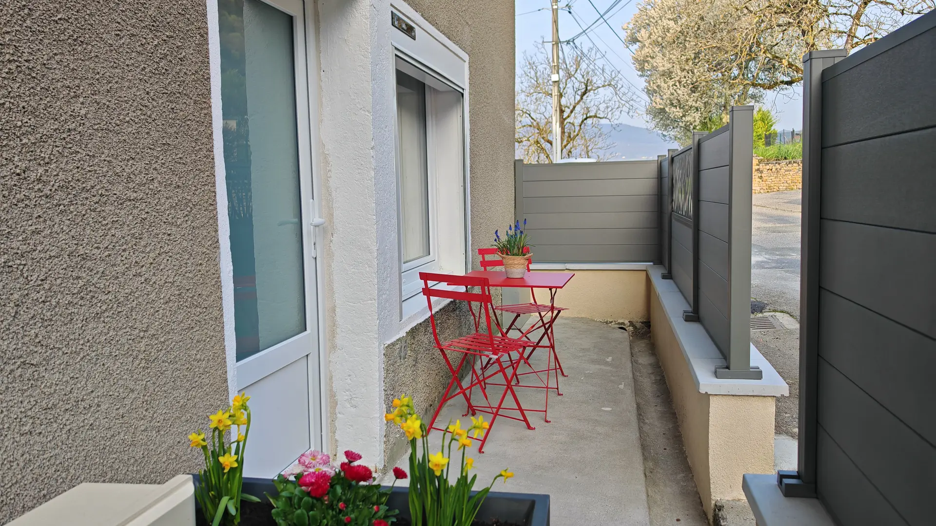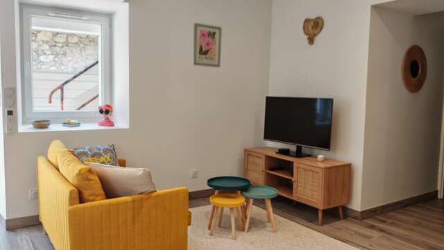 Au pied du Grand Colombier, dans un cadre paisible, nous vous proposons un appartement pour 2 personnes en rez de chaussée qui se compose, d'une cuisine entièrement équipée ouverte sur le salon, un WC indépendant, une chambre avec sa salle d'eau privative.