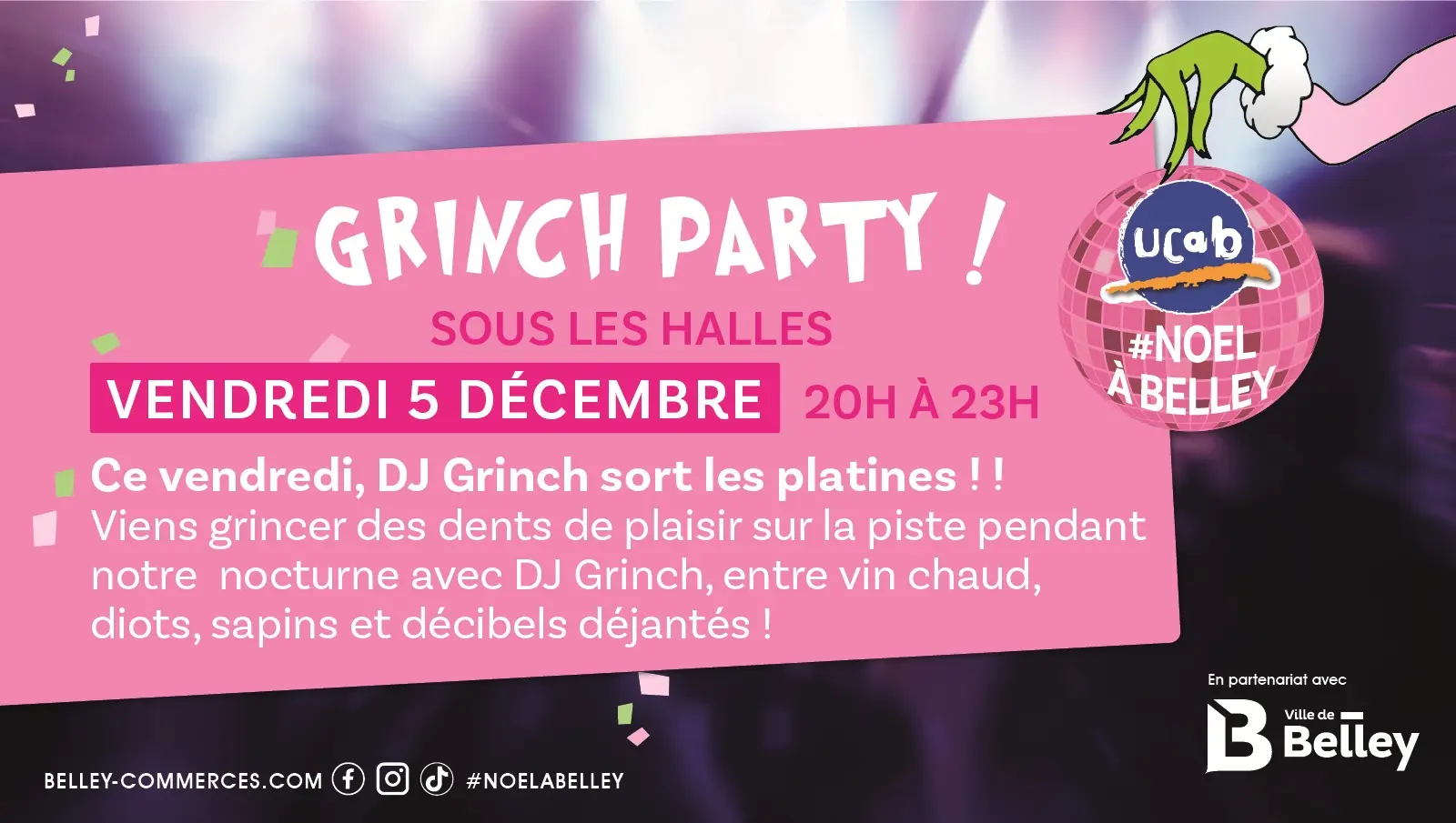 Pour lancer les festivités de décembre, DJ Grinch sort les platines ! Noël à Belley organisé par l'UCAB en partenariat avec la Ville de Belley.