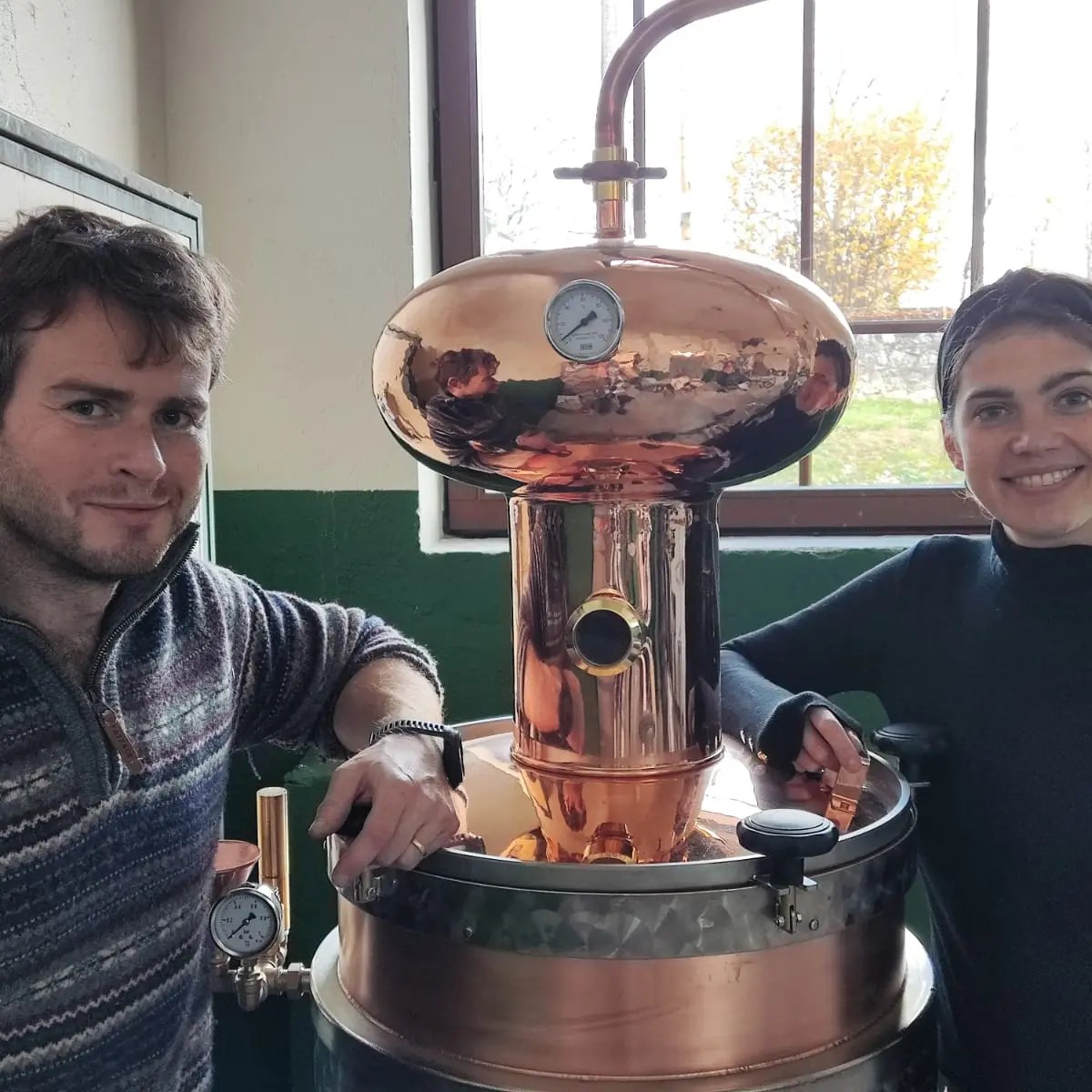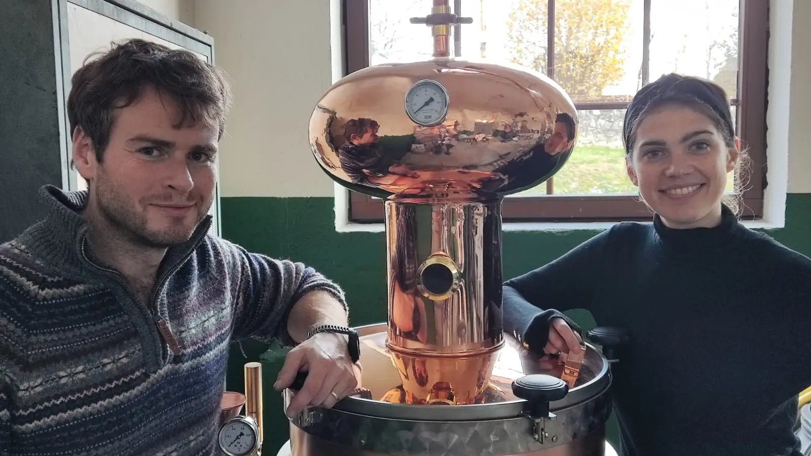 Marie et Phil ont créé la Distillerie du Bugey au cœur de Saint-Martin-de-Bavel dans l’Ain, village natal de Marie, dans un bâtiment à fort cachet architectural.