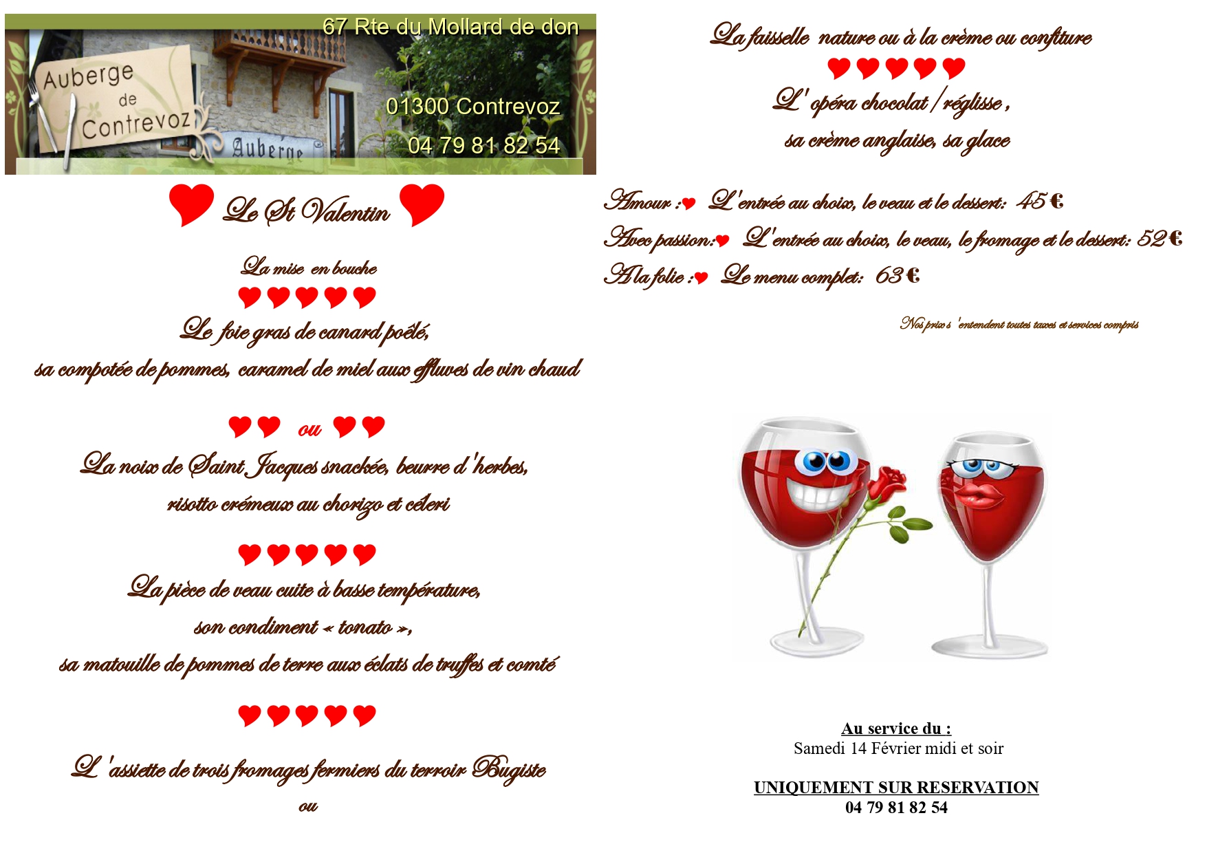 L'Auberge de Contrevoz vous propose des plats à emporter tous les week-ends uniquement sur réservation avant le vendredi soir (selon période).