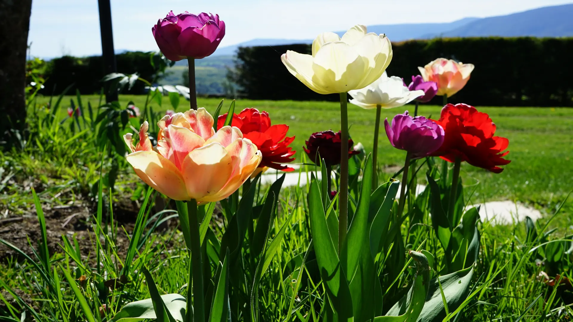 • Grand jardin avec vue à couper le souffle sur les montagnes du Bugey