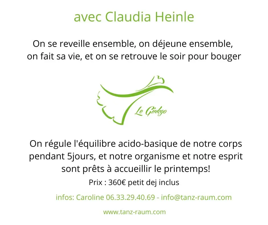 Move & Detox, Claudia Heinle et Le Ginkgo vous proposent de prendre soin ensemble de votre corps, de votre esprit, tout en laissant l'espace pour continuer sa vie quotidienne.