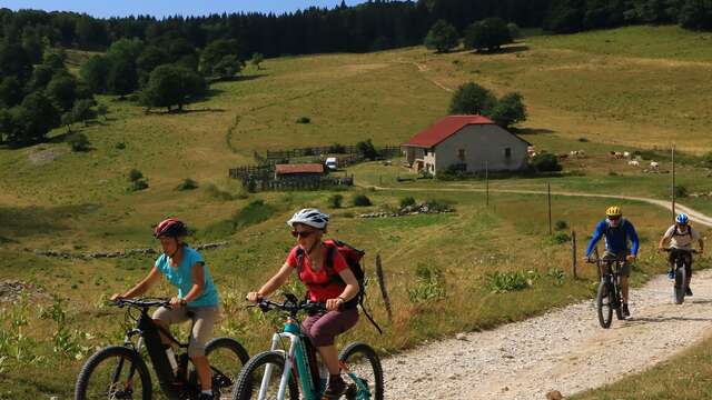 En immersion dans les alpages du massif du Grand Colombier et du Plateau de Retord, le vététiste est prié d’adopter des comportements respectueux envers les troupeaux, les bergers et l’environnement.