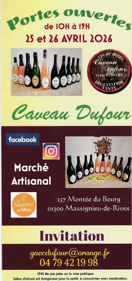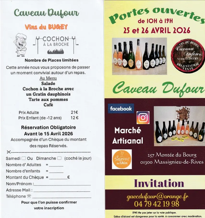 Le Caveau Dufour vous invite à un moment de dégustation de ses vins du Bugey , autour d'un repas convivial.