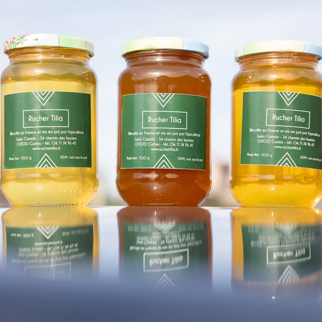 Les miels sont récoltés, extraits et conditionnés sur place. Il s'agit de produits naturels et bruts, les pots peuvent contenir des traces de cire et de pollen. La cristallisation est un phénomène normal.