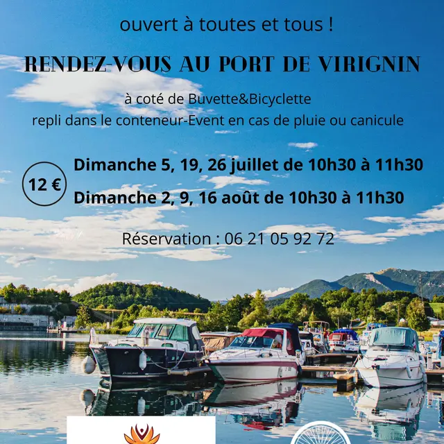Prenez un temps pour vous dans un cadre naturel bucolique, face au port de Virignin, pour une séance de yoga qui allie douceur et enchaînements dynamiques.