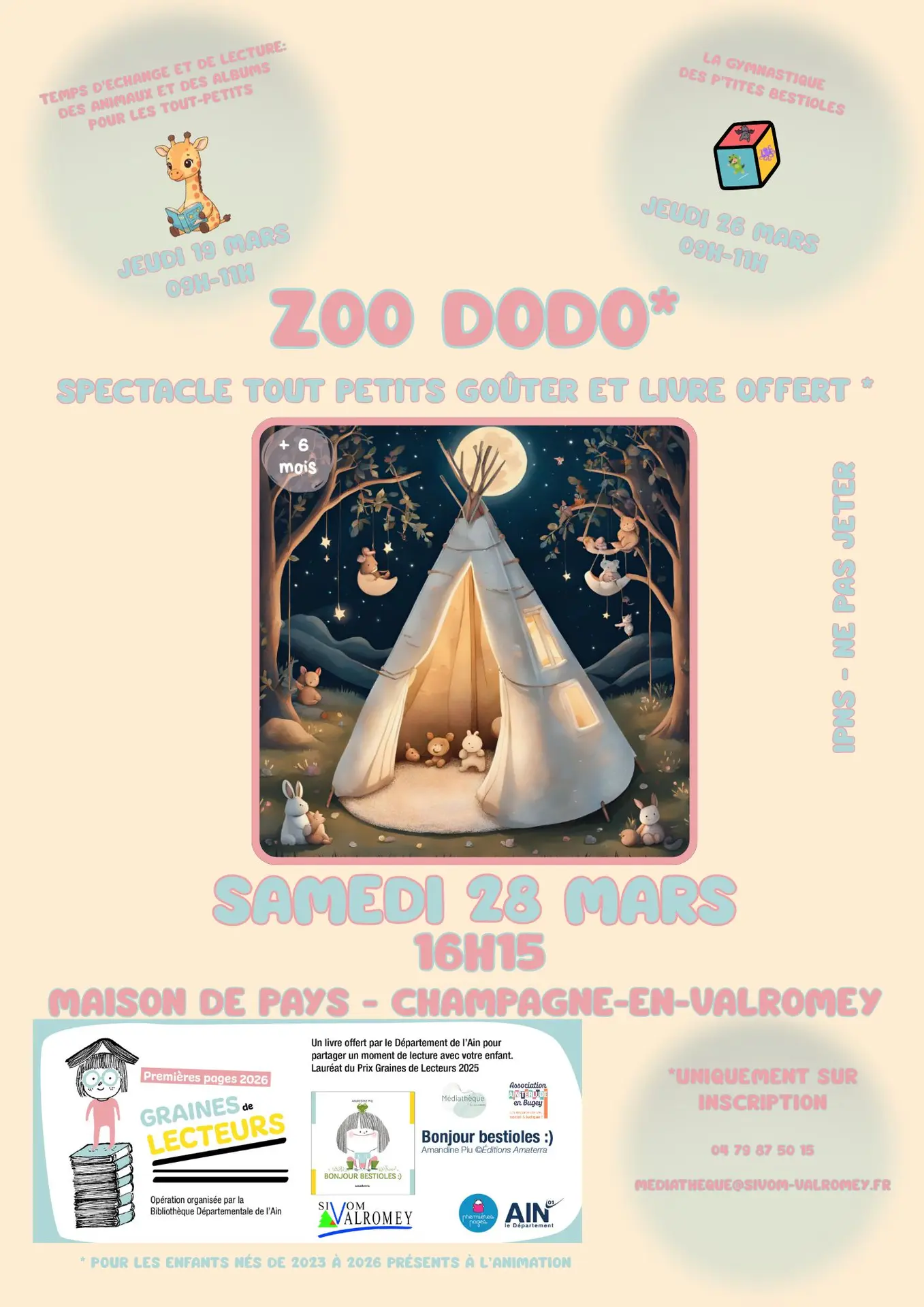 Jeudi 19 mars : 09-11h : Temps d'échange et de lecture des animaux et des albums pour les tout-petits.